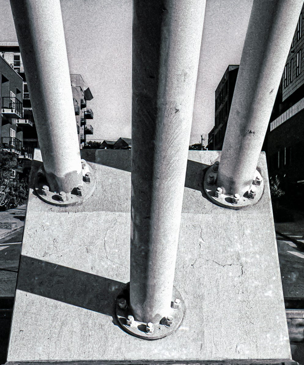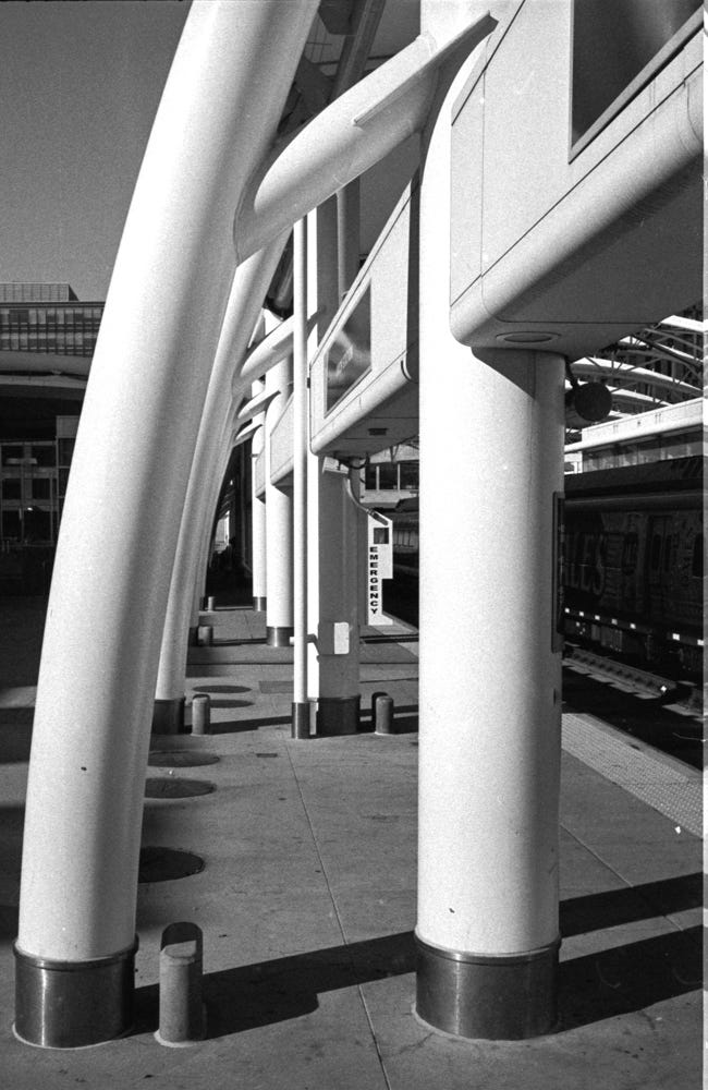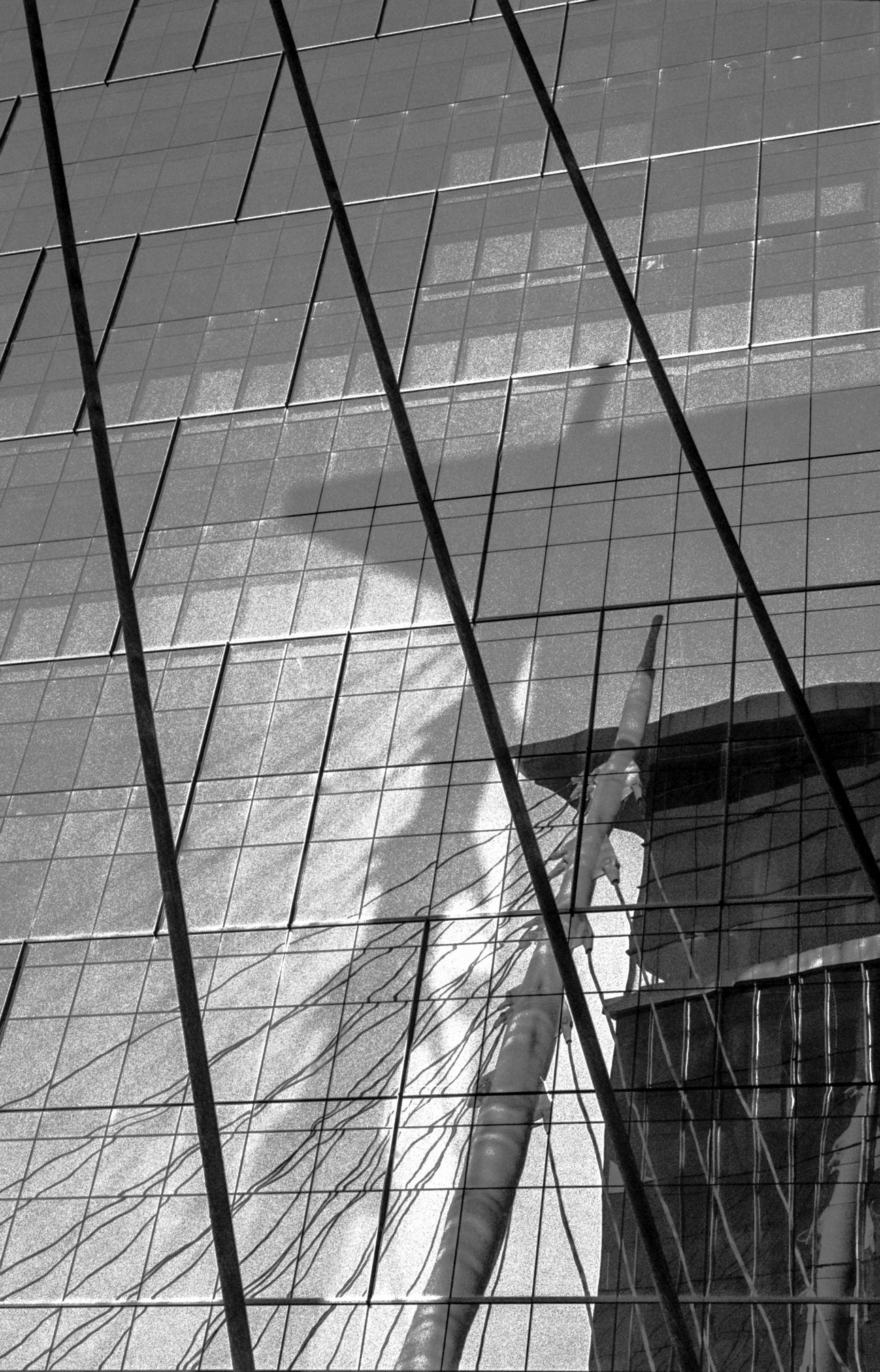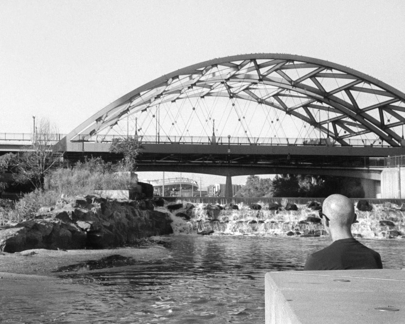 The Millennium Bridge in Denver. According to the Lonely Planet Guide, it’s the “world’s first cable-stayed bridge using a post-tensioned structural construction,” roughly meaning that the bridge is supported entirely by cables. Taken with my Leica M6 / Tri-X 400.